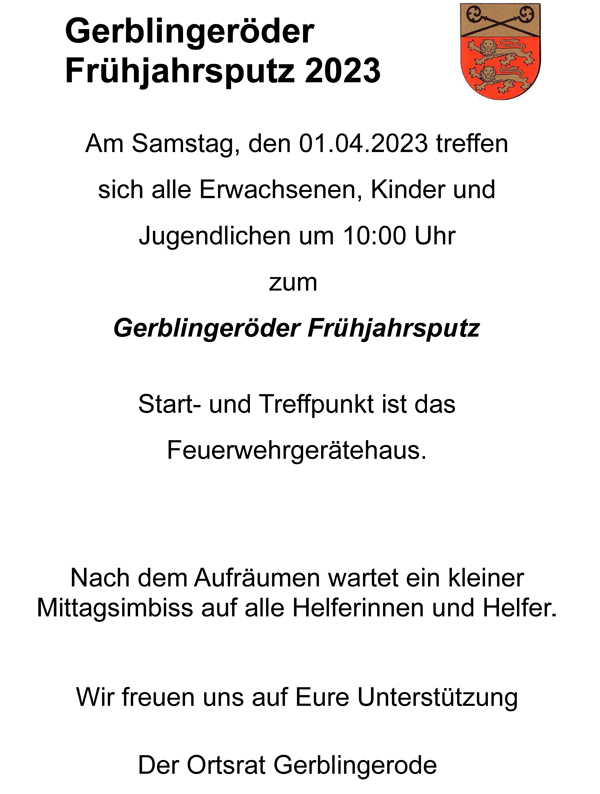 Am 01. April 2023 – und das ist kein Aprilscherz! – findet wieder unser alljährlicher Dorfputz statt.