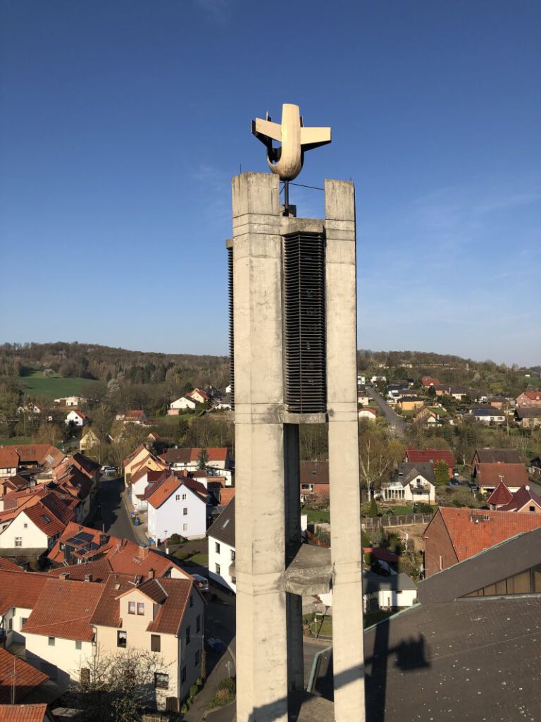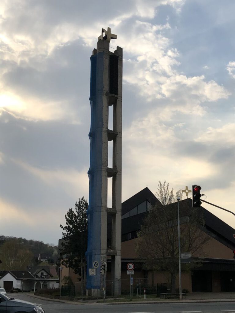 Am Mittwoch, den 28. April, haben die Arbeiten zur Einnetzung des Glockenturms begonnen.