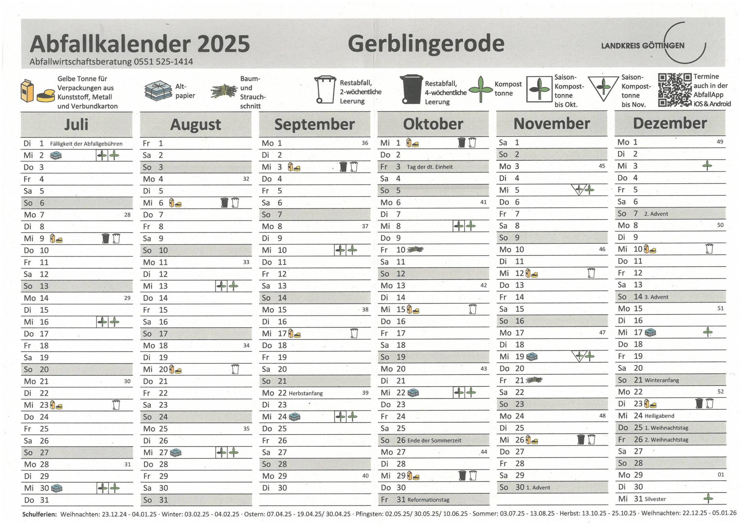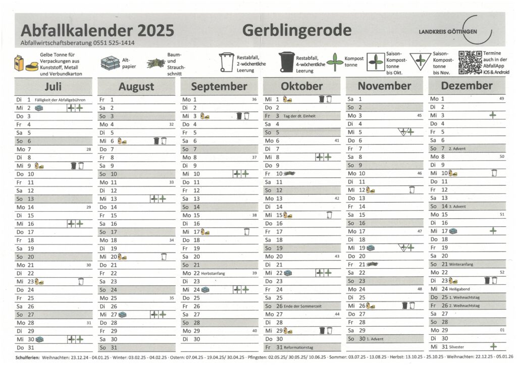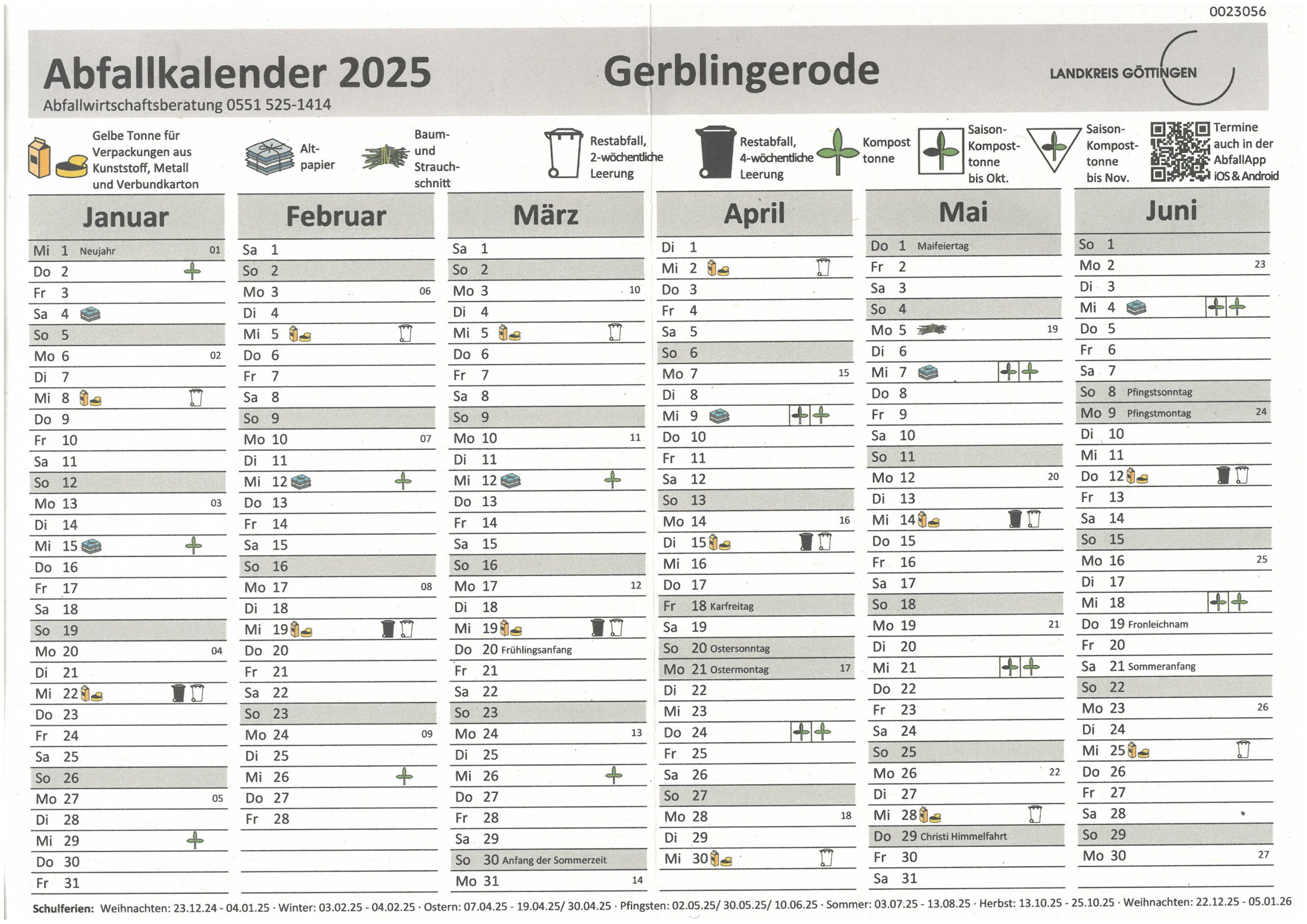 Altpapier (Blaue Tonne) Zusatzfahrt am 04. Januar 2025, 1. reguläre Abholung am 15.01.2025