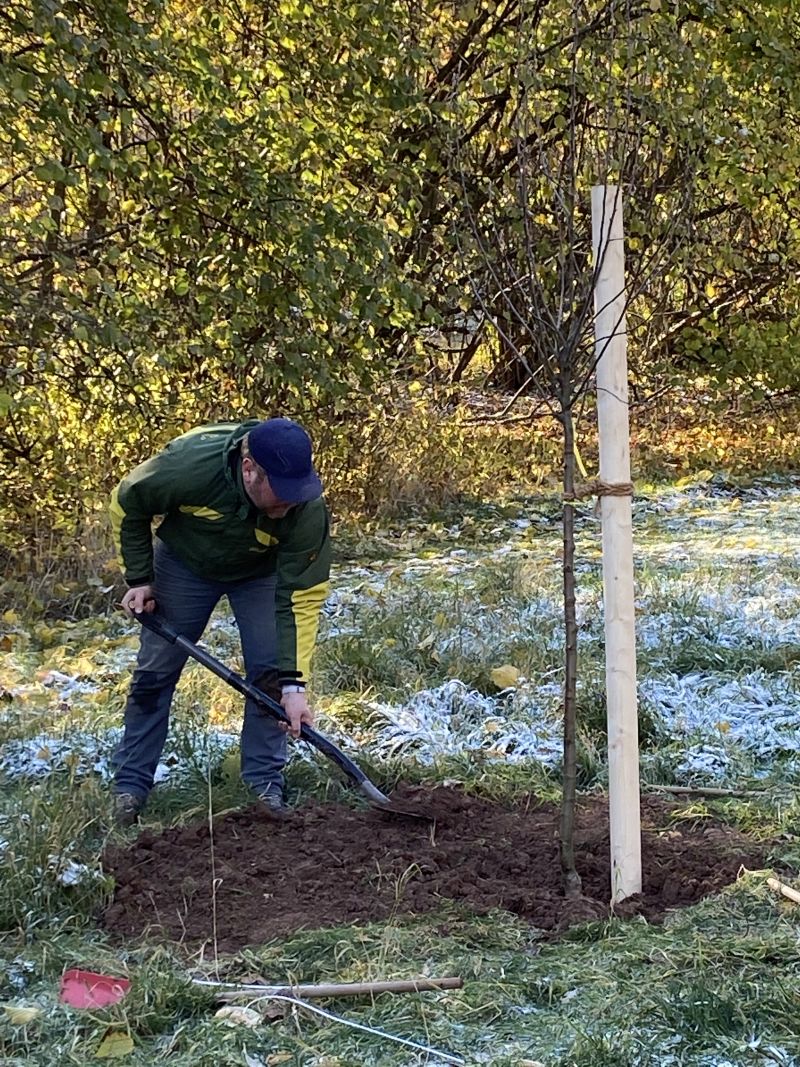 Am Samstag, den 19.11.2022, wurden von den Baumpaten zusammen mit unserem Baumpfleger Dirk die Apfelbäume auf dem Pferdeberg gepflanzt.