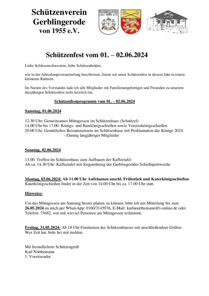 Schützenfest in Gerblingerode vom 01. – 02. Juni 2024