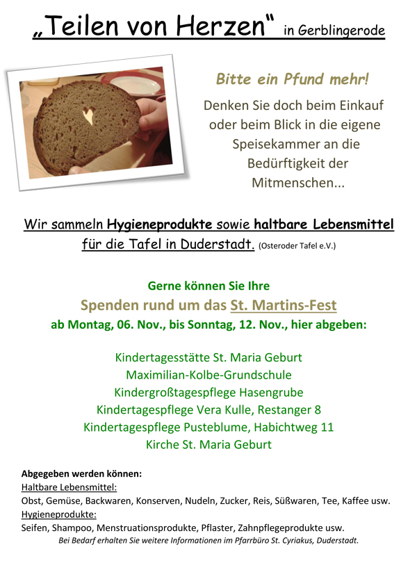 „Teilen von Herzen“ – Spenden rund um das St. Martin-Fest